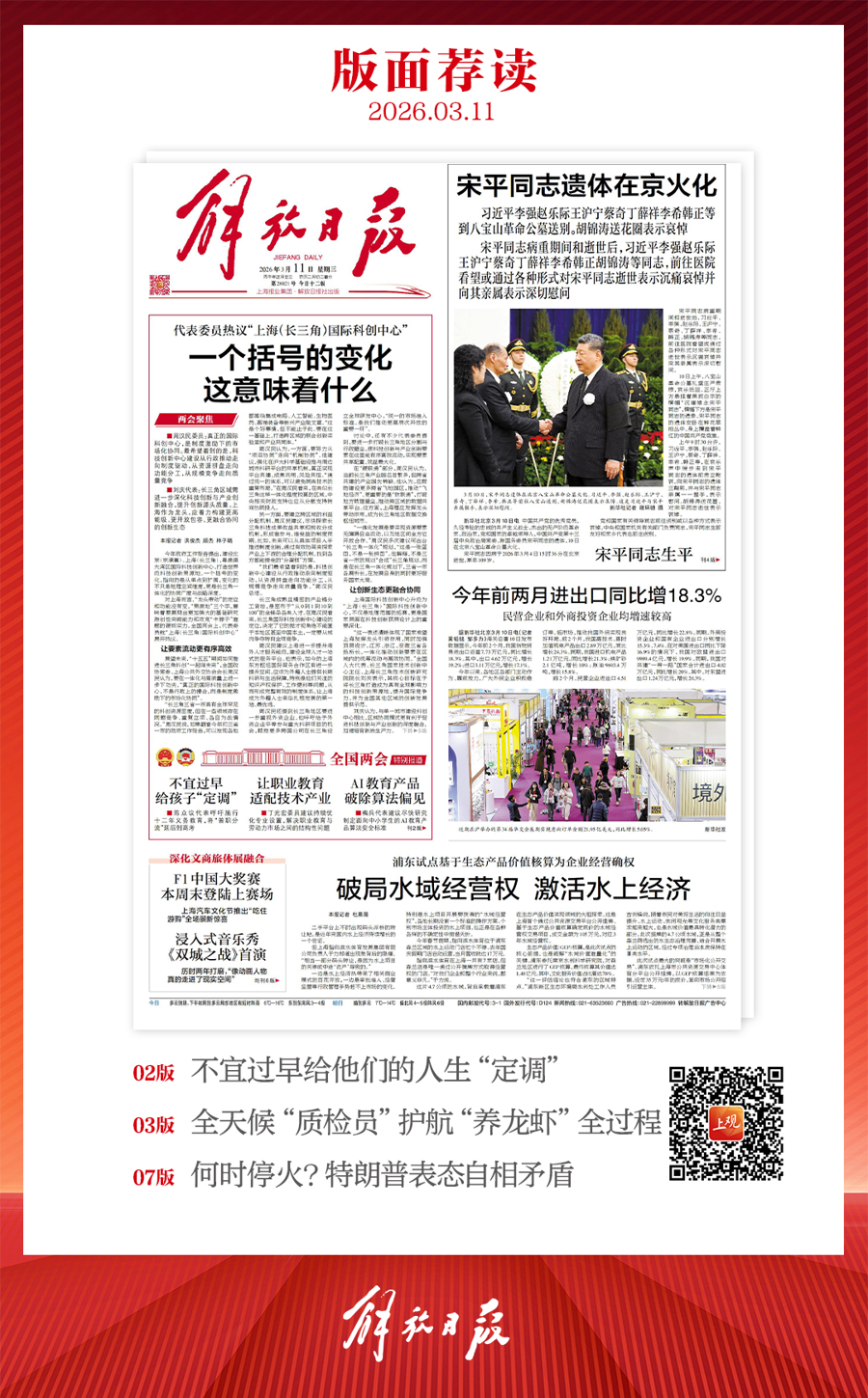 早上好!上观新闻『早读』来啦!2026年3月11日 星期三 农历正月廿三